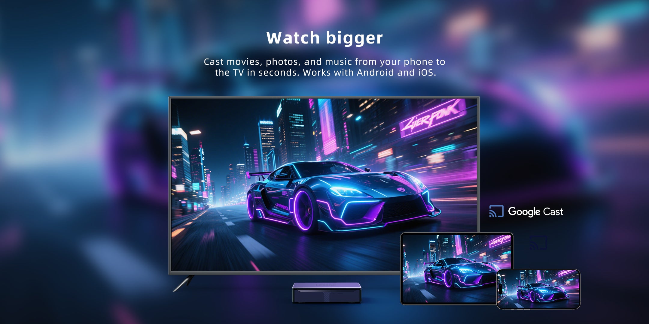 Yes. Our product is Google-certified and features built-in Chromecast support, letting you easily cast content from your phone or tablet.