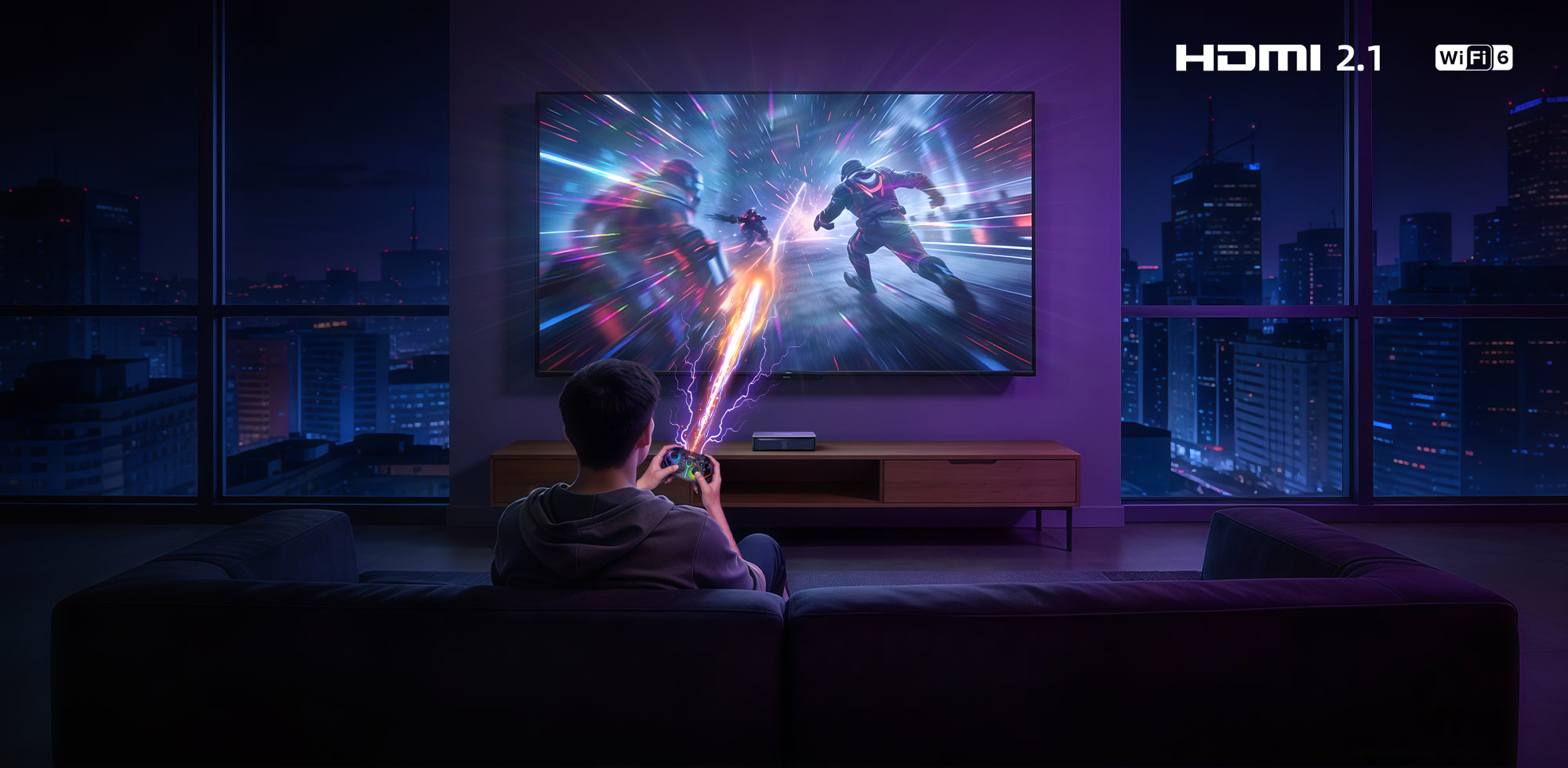 Experience gaming where action instantly matches your command. MEcool MEon1 combines HDMI 2.1b (VRR/ALLM) and Wi-Fi 6 to minimize latency, blurring the line between thought and reaction.